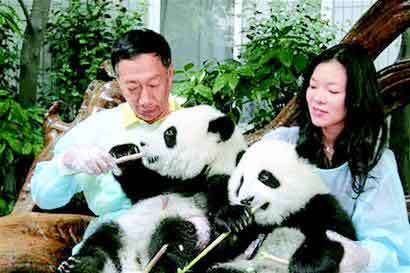 据悉,郭台铭先生认养的3对大熊猫分别为:9月龄的一雄一雌大熊猫“富富”和“康康”;9月龄的两只雌性大熊猫“燕燕”和“婷婷”;8月龄的一雄一雌大熊猫“翔翔”和“欣欣”。