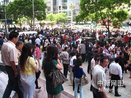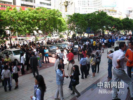 中新网兰州5月12日电(刘薛梅) 今天下午两点二十八分,四川汶川县发生了七点八级地震,甘肃兰州市有明显的震感,市民们都纷纷往楼下跑去,大街上顿时聚集了不少人群。随后街道上道处都是一片打电话的情景,询问家人是否平安。