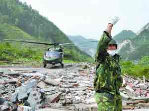5月19日,空军某部炮兵科科长戴志强带领消防员和志愿者徒步15小时后,赶至位居深山的巴蜀电力金河水电站,成功搜寻并营救14名被困山洞中200余小时的矿工。