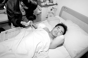 被困废墟80个小时,被救出来后的第一句话是:“叔叔,我要喝可乐,要冰冻的。”这一句话,让薛枭被喻为“逗乐了悲伤的中国”的人。昨日(22日),躺在川大华西医院骨科病床上,薛枭床头柜上和病床下,摆放着很多瓶可乐,这都是记挂着他的人们送来的。他可以尽情喝可乐了,不过,他今后只能用左手喝可乐了。挣脱死神的魔爪后,他的右臂不得不被截肢……