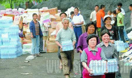 记者随洛水镇党委副书记、发放救灾物资的指挥长宋德芝走进政府大院。大院门口由武警把守,这里是洛水镇收发救灾物资点。大门口的右侧放着矿泉水,堆积如山;旁边是食品,而几间房子里堆放的是被套。“因收发点改了,现在这里不再接收救灾物资,只需将救灾物资全部发放。”她一边说,一边忙着清点大院的东西。