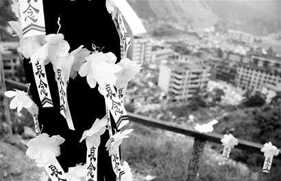 下午4点,仍然有许多人顺着三倒拐进入北川县城。穿着时尚的年轻人,手里捧着鲜花;打扮朴素的中年人,肩上扛着纸扎的房子;大多数人,大袋大袋提着香烛纸钱回来。任家坪村村民王建坐在路边,看着身前走过一个又一个回县城的人,心里既难受又欣慰:“北川这回确实遭凶了,幸好政府晓得这里的百姓讲究百期,开放县城。不然,都不晓得在哪里可以祭拜……” 文、图均据《天府早报》