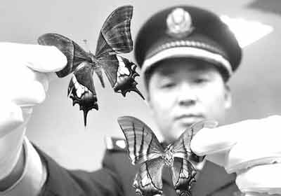 野外生存数量与大熊猫差不多的金斑喙凤蝶,人们在大自然中几乎见不到。但让郑州海关缉私警察为之一惊的是,他们在查获的国际航空挂号信里,不仅见到了24枚喙凤蝶标本,还见到了极为罕见的2枚金裳凤蝶标本。记者今天从郑州海关获悉,他们成功侦破了一起利用邮递渠道走私珍贵蝴蝶标本出境的案件。