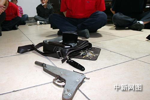 据了解,警方当场缴获赌具一批和赌资人民币30000多元,并在放风男子的包内查获自制枪支和管制刀具各一把。
