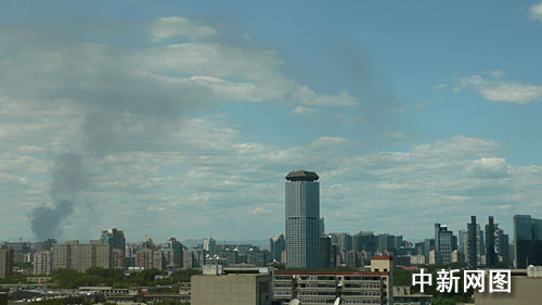 据正在赶往事发地的记者介绍,今日北京天气良好,能见度非常好,事发现场浓烟滚滚,很远处就可看到。据消防人员透露,发生火灾的是一家旧货市场。