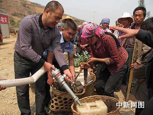 中新网大理3月25日电 (李培荣 李玲)73岁的云南省大理白族自治州祥云县鹿鸣乡雄里坡村村民刘惠泽大爷站在村口的小山坡上,往已经冒烟的喉咙里强咽下一口唾沫,眼巴巴地往山外的远处瞭望,他期冀着奇迹的出现。突然,不远处的山路上两辆负重的消防车鱼贯驶来,刘大爷盼望已久的场面出现了,在刘大爷的招呼下,横断山下的小山村沸腾了,乡亲们拉着给他们送来爱心“甘霖”的公安民警、消防官兵的手,激动得热泪盈眶。这不是电视剧镜头,而是3月24日发生在祥云县鹿鸣乡的一个的真实画面。