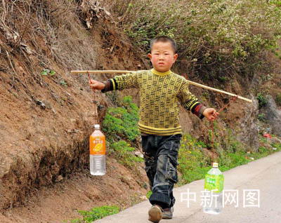 中新网兴义3月29日电 (曹多然 章莹)黔西南旱情目前仍在持续。3月29日,记者此间在贵州旱区走访中发现,当地村民全民动员,通过找水、买水等方式积极开展自救,取水路上不时可见稚龄“小水童”的身影。贵州兴义市白碗窑镇柳树坪村8岁的刘凯就是其中的一员。