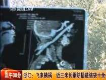 飞来横祸 3米长钢筋插进工人脑袋10余公分