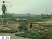 深圳河堤坍塌位移70米 路面出现巨大裂缝