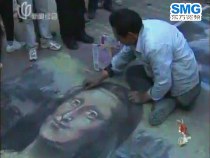“最牛乞丐”街头用粉笔画出“蒙娜丽莎”