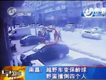实拍:越野车变“保龄球” 野蛮撞伤四人