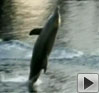 所谓人有失手,马有失蹄,现在还要加上一句,就是海豚也会跳错。在日本冲绳的海族馆,海豚表演刚刚进行到一半,一头海豚跳出水面,却因为重心不稳,摔倒了水池的外面。最终动用了起重机才将其放回水池。