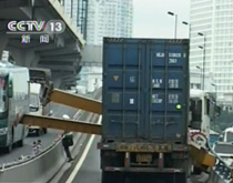 广州:龙门架被大货车“连根拔起”
