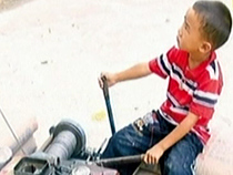 不想洗衣服,又没有洗衣机,怎么办呢?看看这位牛人用水龙头和洗脸盆自制的洗衣机。