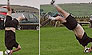 空翻本来就危险,越过一个人落地就更危险了,这位空翻者成功翻越后落一垫子立即产生强大“气场”,此“气场”却是垫子自己发出的,衬托了主角!