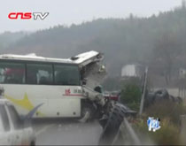 公交车上的司机和4名乘客被救出送往医院后,由于货车上的司机伤势严重,并且卡得很紧,周师傅和乘客没有办法救出来,才等到消防官兵前来救援。