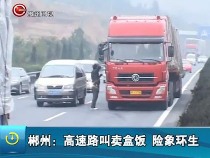 村民高速路中间叫卖盒饭 危险重重