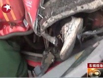 两车追尾油箱破裂 司机被卡变形驾驶室