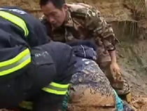 三小孩淘气陷泥潭 消防紧急扒泥救人