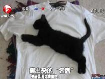 黑猫爬上白衬衫 摆出趣味“名牌”