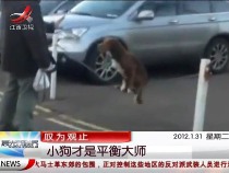小狗平衡感超强 后腿站在铁链上身子摆动