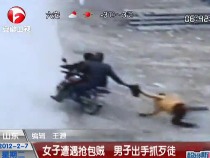飞车贼抢劫女子 梁山好汉以1敌2勇擒歹徒