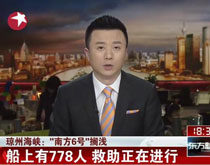 琼州海峡:“南方6号”搁浅 船上有778人
