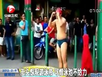 闹市惊现"游泳帝" 街头热身跳"泳池"笑喷众人