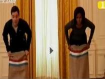 奥巴马夫人与男主持拔河赛跑拼体力终获胜