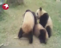 熊猫宝宝打喷嚏吓到熊猫妈妈