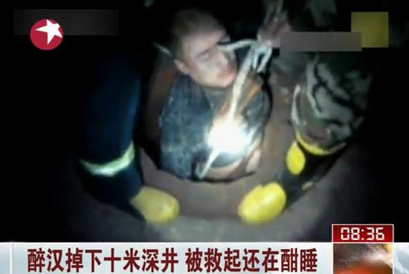 醉汉掉下十米深井 被救起还在酣睡