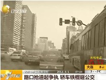 路口抢道起争执 轿车铁棍砸公交