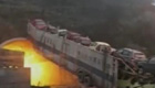 实拍半挂车失灵"爬"上隧道顶