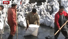 男子发现鸭子被冻湖面 跳湖破冰救援