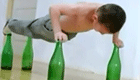 实拍:裸背小孩玻璃瓶上做俯卧撑
