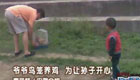 爷爷鸟笼养鸡 为让孙子开心