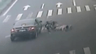 实拍:摩托车载五人 闯红灯被撞飞