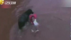 男子发现鸭子被冻湖面 跳湖破冰救援