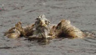 男子发现鸭子被冻湖面 跳湖破冰救援