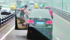 实拍男子驾车3次开车门将身子悬车外