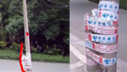 史上最牛胶布 胶布固定电线杆