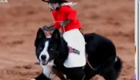 小猴驾驭牧羊犬 赛场掀小"旋风"