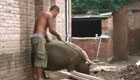 牛人练举重 用汽车当杠铃