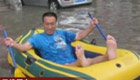 天津市民雨中遛狗水中冲浪展现乐观