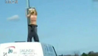 金发美女公路上车顶热舞