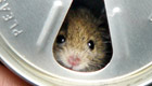 老鼠挤进啤酒罐偷酒 喝饱难钻出
