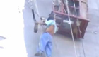 钢丝绳突然断裂 建筑工人悬高空