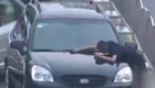 男子拦车乞讨 不给钱就踹车脱裤子