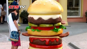 实拍挑战10分钟内吃掉2斤重巨型汉堡