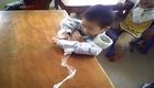 男孩错把电推当梳子